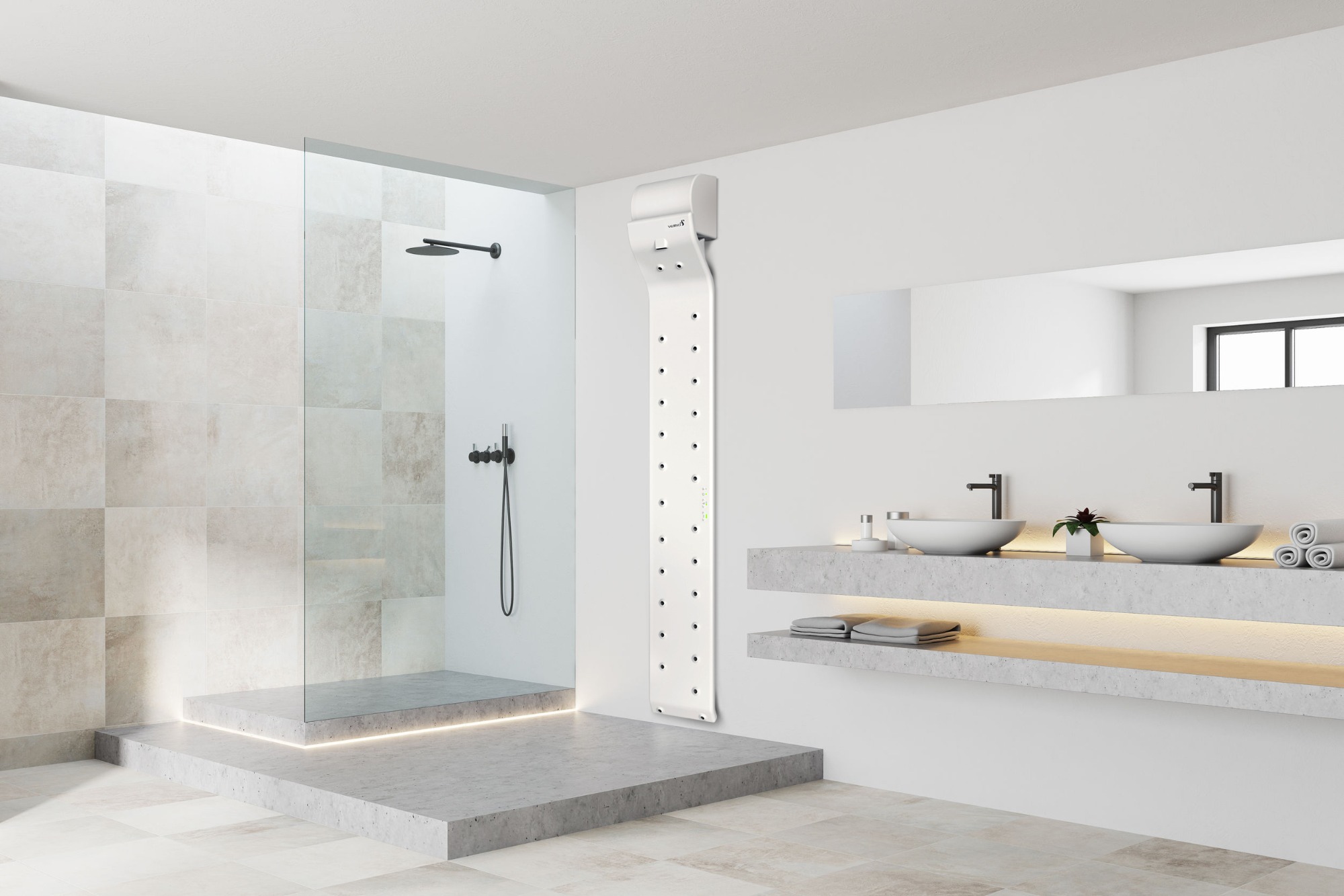Volledig drogen is essentieel voor een gezonde huid en het voorkomen van irritaties. Met Valiryo verandert drogen in een zachte luchtmassage die de spieren ontspant en de huid op natuurlijke wijze droogt, zonder inspanning of wrijving. Verander uw badkamer in een ruimte van comfort en welzijn, waar drogen niet alleen het douchemoment afsluit, maar het naar een hoger niveau tilt.